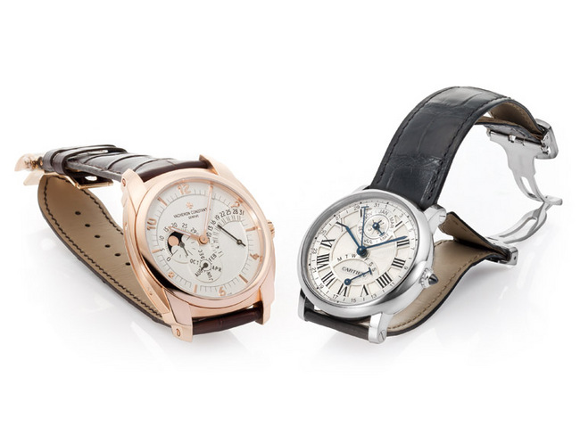 ▲ 左為VACHERON CONSTANTIN Quai de l'Ile逆跳年曆錶,右為CARTIER Rotonde萬年曆手錶。