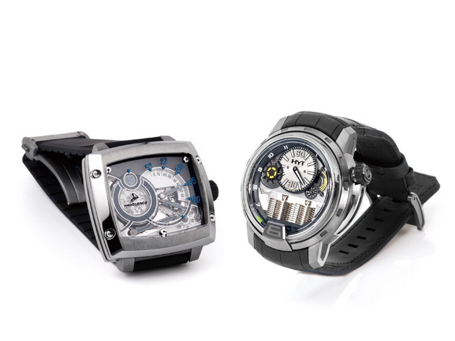 ▲ 左為CARL F. BUCHERER Patravi Chronograde,右為HARRY WINSTON Midnight月相手錶。