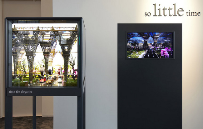 愛馬仕一向樂於挑戰具有特色的陳列風格,營造出特別的場景和氛圍,使人沉浸於其中。因此,2012年,荷蘭設計師Kiki van Eijk應愛馬仕之邀,為品牌系列鐘錶, 設計了令人驚奇的展示空間,吸引無數人駐足觀賞。2014年,愛馬仕再次為鐘錶邀請了荷蘭的藝術家Bethany de Forest來設計製作一系列充滿幻想的櫥窗場景。愛馬仕選擇Bethany de Forest,因為她顛覆一般的觀念,在她極微小卻充滿想像的夢幻場景中,增強了我們對世界的洞察力。在這位荷蘭藝術家的敏銳情感中,愛馬仕鐘錶有了夢幻般的呈現方式。