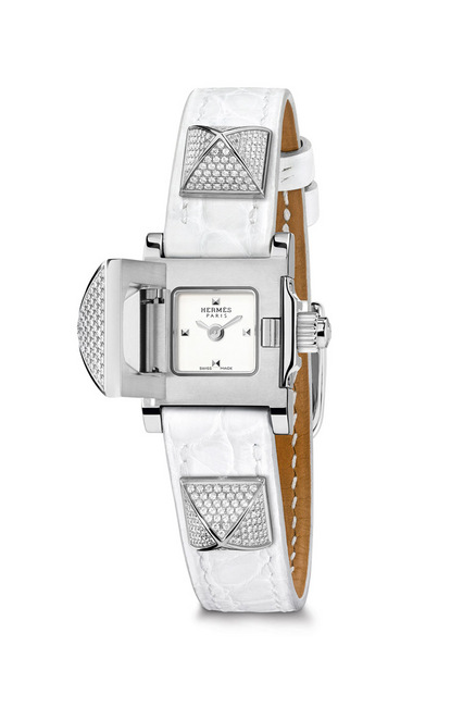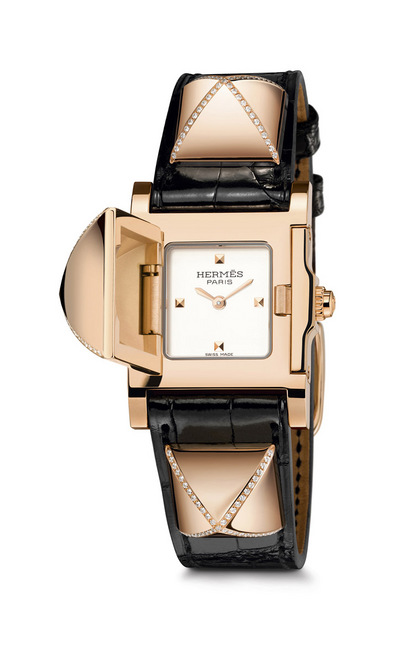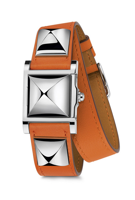有時候,設計是對美麗事物的再造,而Médor手錶正完美地詮釋了這層含意。首次誕生於 1993年的Médor手錶靈感來源於愛馬仕首批製作並且與馬具相齊名的產品之一——狗項圈。長久以來狗是人類最好的朋友,牠與馬匹同出一轍,一直是愛馬仕家族的靈感之源。之後Médor在設計上踏出一小步,從女士們的腰身來到手腕,以手鐲的形式出現。概念通常是接踵而來的,飾上代表性「Clous de Paris」金字塔形飾釘的皮革手帶,搖身一變成為專為你提供「秘密時間」的手錶。