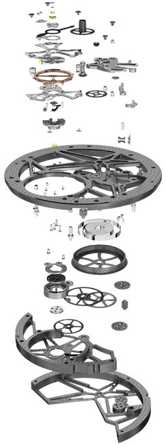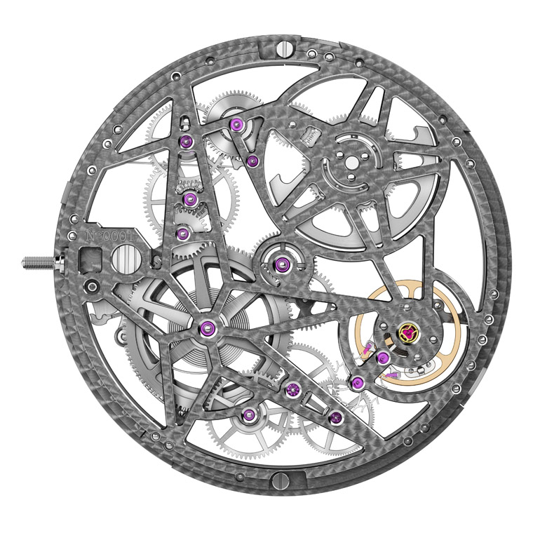 ▲ RD505SQ機芯:廠内自製的獨家鏤空飛行陀飛輪機芯。