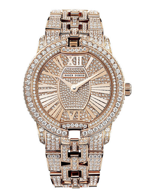 玫瑰金材質/自動上鏈機芯/時、分顯示/錶款鑲鑽、約重9克拉/日內瓦印記/藍寶石水晶鏡面/參考價:NT$ 4,675,000