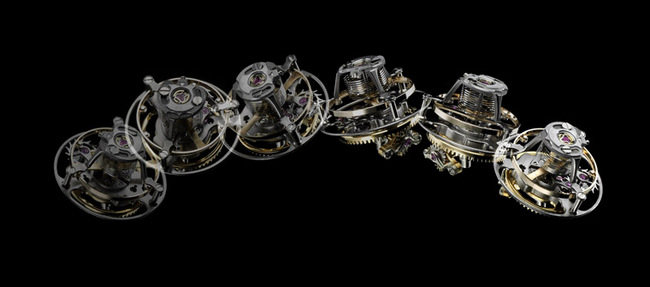 ▲ Sphérotourbillon球型陀飛輪,由105枚組件打造,以五級鈦金屬打造陀飛輪框架。