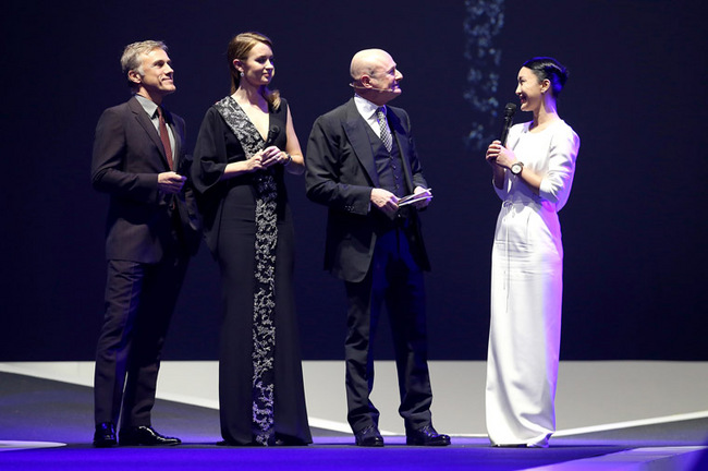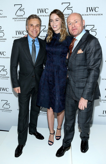 ▲ Christoph Waltz與Emily Blunt 、IWC CEO George Kern參與IWC 2015年日內瓦國際高級鐘錶展活動