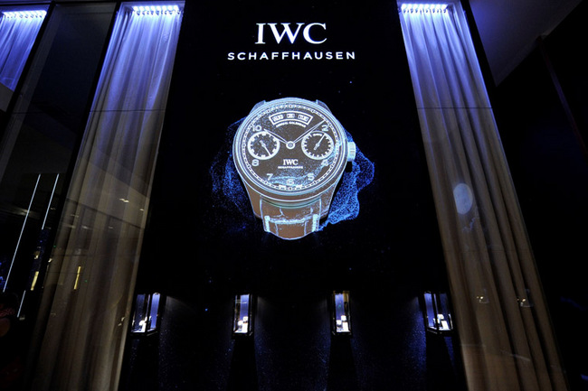 ▲ 今年展場應用了玻璃幕牆,投射出的一個大型3D錶殼模型展示新一代IWC葡萄牙系列