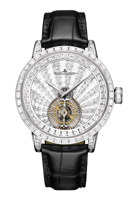 ▲ 積家Master Grande Tradition Tourbillon Orbital超卓傳統軌道式陀飛輪大師系列手錶,搭載946型手動上鏈機械機芯,面盤以全新3D結構全鋪鑲長方形切割鑽石,盡見獨妙匠心 。