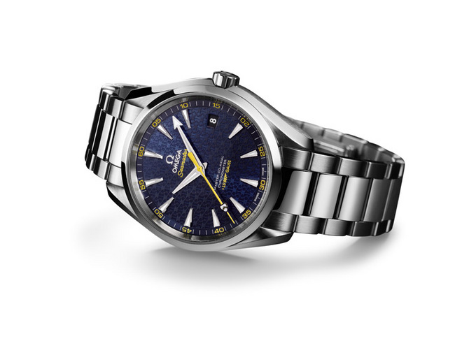 第24部詹姆士.龐德電影《Spectre》預計在2015年上映,為了滿足影迷的衷心期待,OMEGA特別打造一款以龐德家族盾形徽章為靈感的限量版海馬Aqua Terra 150M手錶。此錶款的藍色面盤上是以該徽章重複交錯構成動感紋理,此外,黃色中央秒針接近末端的位置也會出現盾形徽章,而面盤顏色則與詹姆士.龐德在上一部電影《007:空降危機》中佩戴的手錶相互呼應。