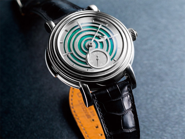 以同心圓設計將盤面打造成迷宮一樣的神祕魅力,悠揚的音階在時間當下被敲響,樂音旋律隨即從迷宮中某處迴盪而出,交響著令你我著迷的音律,純粹而美麗。