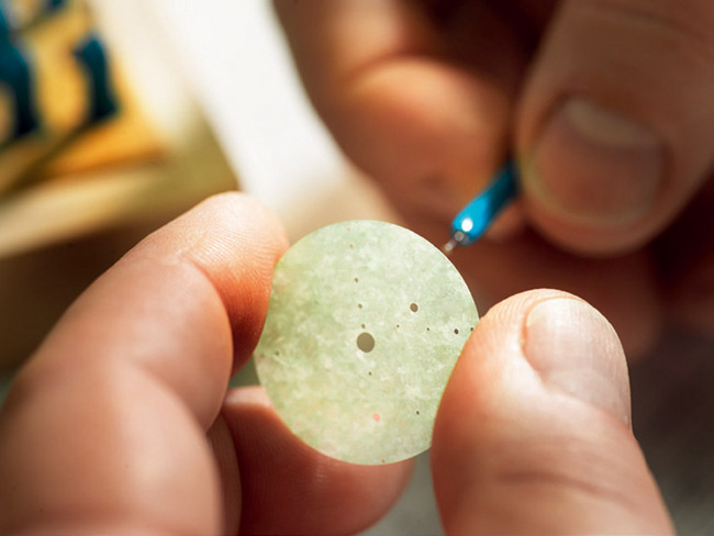 白金的鏤空面盤先經過電腦數控(CNC)機器的加工處理,再進行精整,每處線條輪廓皆以手工方式進行倒角加工,精緻非常。