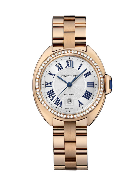 ▲ 卡地亞Clé de Cartier系列手錶,直徑31毫米,搭載卡地亞1847 MC型工作坊精製自動上鏈機械機芯,錶圈鑲鑽,18K玫瑰金錶殼與鏈帶。參考價格 NTD,120,000元