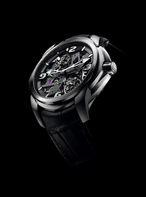 獨具特色的錶圈,數字標搭配上不對稱的錶橋以及基底板,讓這只新發表的手錶在BLANCPAIN的系列中獨樹一幟。這款精心製作及帶有NAC塗層平滑磨砂面(電鍍工藝使此錶款具有深色橋樑和底板)的最新設計,兩個框架的陀飛輪及卡羅素在新錶款中巧妙的被重新塑型及想像。開放式的機芯,多層次架構,透過複雜工藝的深度傳遞對手錶所注入的生命力,被雕刻成六角型圖騰的機芯螺絲更增添了組裝的生動。這隻手錶的設計元素再再呈現出所有BLANCPAIN的「創新」。
