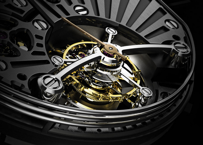 ▲ BVLGARI最新Daniel Roth系列Carillon Tourbillon鐘樂報時陀飛輪手錶展現出前所未有的內斂風格,筆直的小時刻度,輪廓更是如同建築結構的簡潔俐落。
