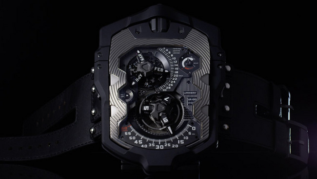 瘋狂,複雜,夢寐以求,高科技,未來氣息......簡而言之,UR-1001 「TITAN」是URWERK最破格的時計作品,有一身鈦金屬盔甲護體,以最原創的模式顯示秒、分、時、日/夜、日期、月、年、100年甚至1000年指示,以實實在在的角度呈現虛無奧妙的時間觀念。