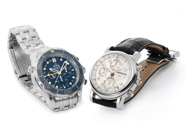 ▲ 左為OMEGA Seamaster Diver 300M Co-axial GMT Chronograph,右為MONTBLANC Star Chronograph UTC。