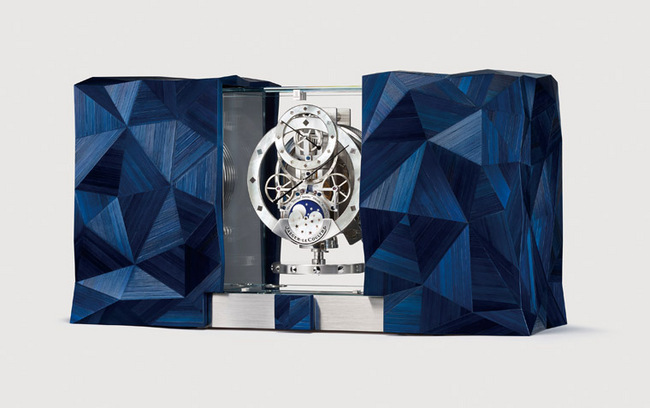鐘殼所採用的麥稈鑲嵌工藝乃是17、 18世紀盛極一時,卻曾消失匿跡的傳統藝術。鐘殼表面的稜角起伏使光影折射,營造出三維立體感,壯麗華美。