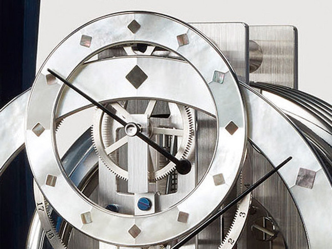 自古以來,人類透過觀察晝夜循環、月相盈虧、和四季交替等現象來觀測時間,制定曆法。 時間的推移與宇宙運行息息相關,或可說,欲掌握時間本質,探索無垠的宇宙奧祕是其中關 鍵。2015年,積家便將太空寰宇訂為年度主題,多款新作或搭配完整日曆與月相盤,或採用隕石、青金石等特殊材質,精彩詮釋迷人天文主題,這款Atmos Marqueterie Paille麥稈鑲嵌空氣鐘便是其中之一。