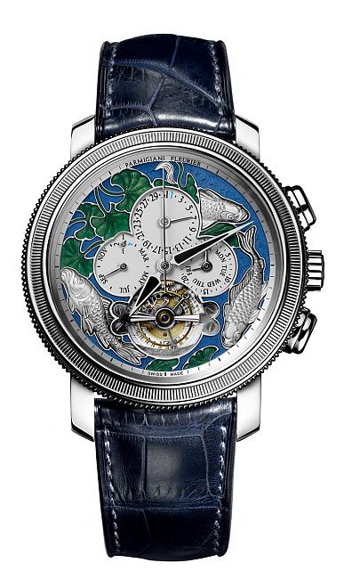 ▲ 以「LES CARPES DE SANDOZ山度士先生的錦鯉」為主題,帕瑪強尼打造出絕美精湛的Toric Tecnica Carpe手錶。