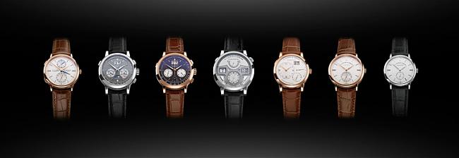 ▲ 朗格最新系列手錶(左至右): SAXONIA DUAL TIME、DATOGRAPH PERPETUAL、DATOGRAPH UP/DOWN、ZEITWERK MINUTE REPEATER、LANGE 1、SAXONIA AUTOMATIC及SAXONIA。