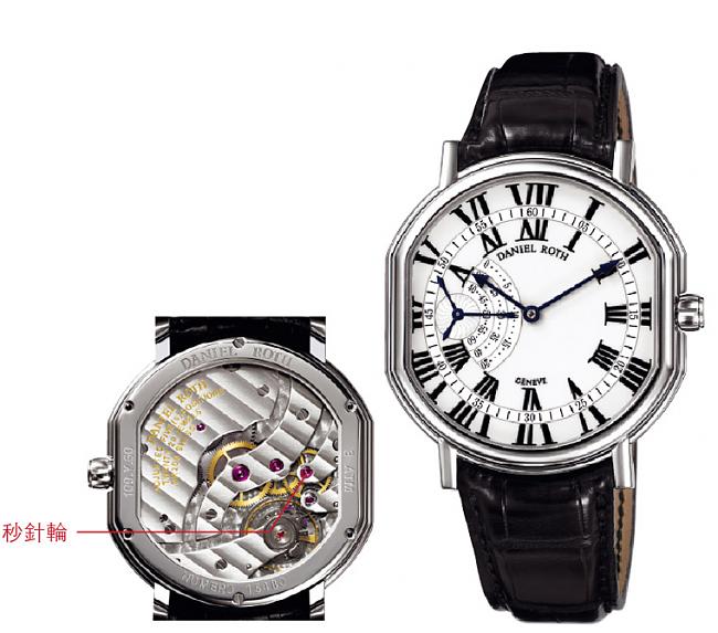 ▲ 這款機芯目前是瑞寶錶的專用機芯,它的原型是ENICAR Cal.165機芯,經過瑞寶錶的小修改,成為多功能機芯。這枚機芯原本的設計就是大三針功能,由機芯的拆解圖我們可以看到,它的二番輪位於二番輪夾板下方(在機芯中央的位置),左側的三番輪上面連接四番輪,因此分針輪與秒針輪都位於機芯中央,自然無須其他的輔助齒輪,這是非常節省空間、也十分方便的設計。所以瑞寶錶還可以在6點鐘位置,放置一個小秒針的位置,但目前瑞寶錶都將此機芯的秒輪軸心截短,只採用小秒針顯示。