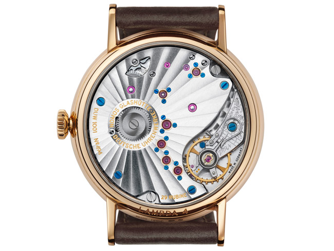 ▲ Lambda 39 經典款式,配備鍍金指針。完美的品質與永恆的優雅氣質在這款39毫米的手錶中融為一體。在NOMOS錶廠,每週只能生產兩到三枚此類貴金屬手錶。