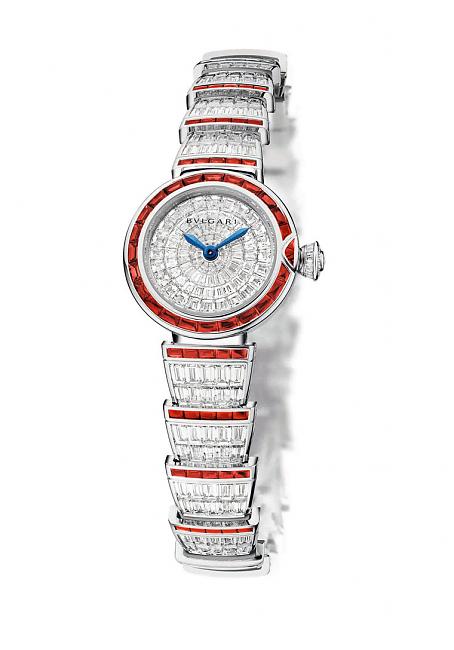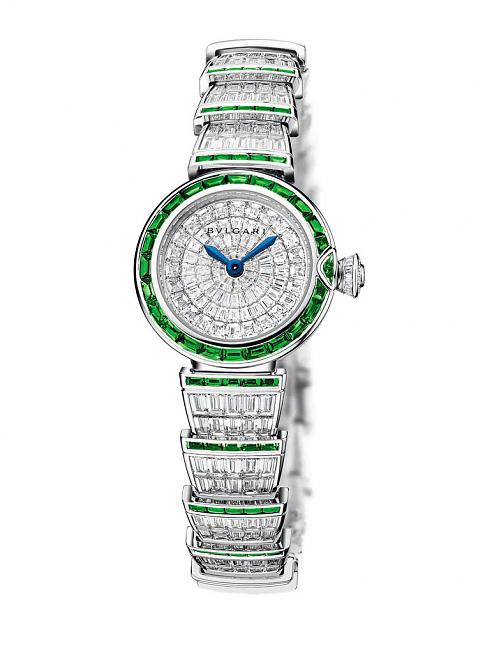 BVLGARI以最華美最優雅的高級珠寶妝點LVCEA系列。這是極尊貴的精品組合,宛如完美展現BVLGARI 專業的舞台,三款以鑽石、紅寶石、祖母綠打造的貴重手錶;價值連城的寶石光芒簇擁着時間流動,也讓 LVCEA 系列迸射華貴逼人的光彩。「時間,能揭開一切的秘密。」希臘數學家哲學家 THALES,生於公元前 625 年; 「LVCEA,能為時間帶來光芒。」羅馬珠寶商BVLGARI,創於1884年。