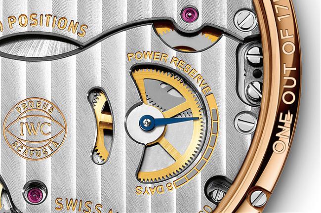 手錶簡潔的設計與源自1930年代的首批325型葡萄牙手錶極為接近,擁有葡萄牙手錶家族的所有設計特色:潔淨的奶白色面盤、凹槽型錶圈、3個阿拉伯數字時標、纖細的葉形指針、軌道式分鐘圈以及6點鐘的小秒針,而其內分鐘圈、小時刻度以及阿拉伯數字則採用了濃墨重彩的金咖啡色鑲黑邊設計,與玫瑰金錶殼互相彰顯著濃厚的經典、高雅氣息。為符合現代需要,6點鐘位置新增了日期視窗,以小圓形框架顯示。搭載59215型手動上鍊機芯,備有八日動力儲存,更擁有頂級工藝水準。手錶的動力事實上可達九天,但為了確保機芯的精確運轉,避免發條張力完全耗盡前機芯停止,一項巧妙的製動裝置將走時限制在開始的192小時(八天)內,有助消除主發條矩力不斷變弱帶來的不利影響,並確保手錶走時精準 。