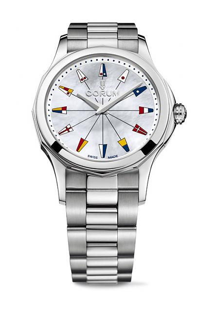 無獨有偶,Legend 32 石英女錶造型時尚,無論日間還是夜晚佩戴,都是愛美女性的裝飾佳品。高精度的瑞士石英機芯不用上鏈,更為方便。不鏽鋼錶殻為充當低調背景卻又熠熠生輝的珍珠母貝錶盤構造出完美框架。12面風格各異的旗幟代替了數位時標,醒目地點綴於工藝奇巧的錶盤之上,再度續寫了海軍上將杯系列的無上輝煌。手錶採用不鏽鋼鏈帶,更增添了活潑和運動感。