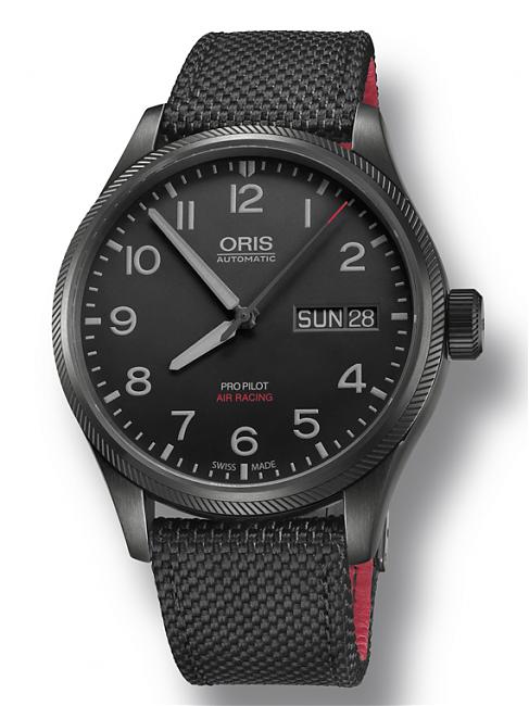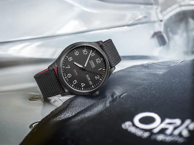 手錶由Oris 752自動上鏈機械機芯驅動,大三針佈局,在錶盤3點鐘位置顯示星期和日曆。錶帶外側為黑色纖維材質,內側皮質則使用了豪利時標誌性的紅色。