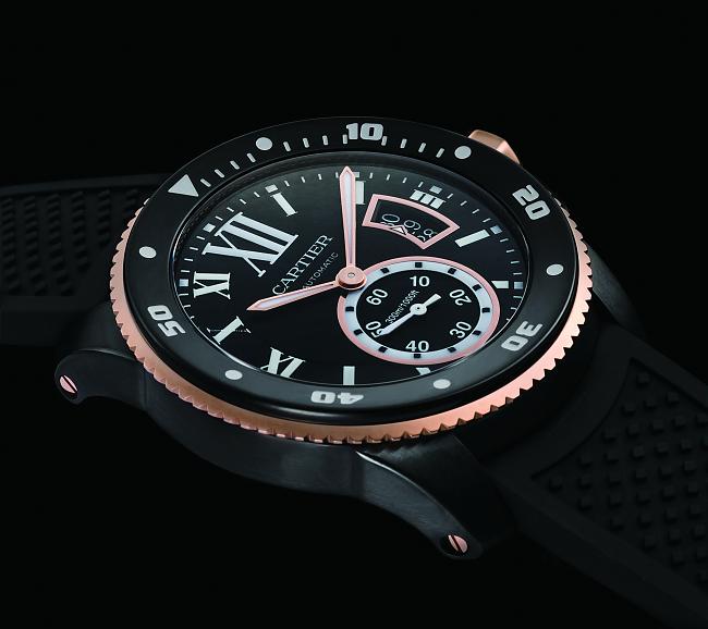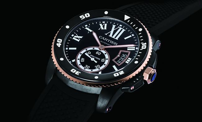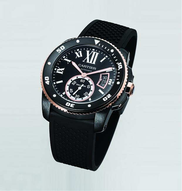 CARTIER卡地亞在今年推出了Calibre de Cartier Diver不鏽鋼潛水手錶,採用玫瑰金搭配黑色風格呈現,符合今年的黑金配潮流!不但維持品牌一貫的優雅形象,還為手錶混搭出別有風味的運動風情。