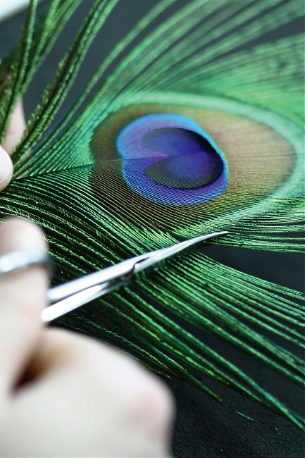 羽毛工匠心靈手巧,以無比耐性及一流手工把這門工藝提升至更高境界。工匠首先按羽毛的素質、密度和色澤嚴格挑選,然後將之清洗、蒸熨定形,並以人手修剪,然後按主題精細鋪排成形,最後黏合壓平,心思手工慎密,讓面盤化身藝術舞台。