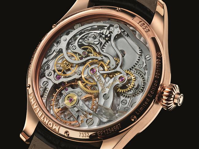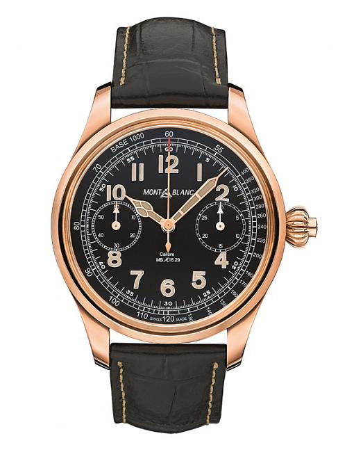 18K玫瑰金材質/MB M16.29手動上鍊機芯/時、分、小秒顯示/單按把同軸計時碼錶功能/藍寶石水晶鏡面、透明底蓋/防水30米/錶徑44mm/限量100只/參考價:NT$ 1,028,100