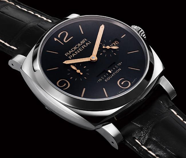 PANERAI 沛納海的P. 2000系機芯於2005 年推出,是品牌的第一枚自製機芯,隨著後續有愈來愈多機芯家族誕生,2000系遂成了品牌旗下較偏高價的款式專用的機芯。在2005年當時以三發條盒來達到八日鍊的基礎機芯相當稀少,沛納海的P. 2002和這次介紹的另一家寶鉑的13R0 已經可以算是最具代表性的兩個例子了;沛納海的款式單純,加裝複雜功能未必是機芯採用多發條盒、長動力的首要理由,但事實上P. 2000系自從推出以來已經陸續發展出多種複雜功能,其中包含了極端複雜的陀飛輪和天文顯示,以結果來說的確要拜它有個動力強大的硬底子之賜。時間等式功能過去是搭配著陀飛輪一起推出的,因此機芯型號是P. 2005/G(2005 是2000 系的陀飛輪版),2015年推出的這枚P.2002/E 是這項功能首次單獨出現,它保留了6 點鐘的直線式時間等式和3點鐘的指針式月份,取消了原有的日出日落時刻,讓錶面看起來大為簡化,也跟帶有陀飛輪的款式做出明確的區隔。