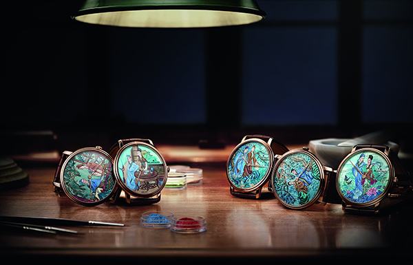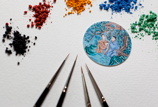 每一只手錶描繪了梁祝故事中的一幕關鍵場景,一旦將五只錶「合體」,這一中國的愛情經典便隨之完整,躍然面盤之上,品牌一方面想要呈現他們的琺瑯彩繪技藝深度,另一方面也代表其對中國文化的嚮往,如此透過西方人筆觸描繪的東方古代世界,實際上也別具一番文化和諧交融的少見衝突美感。
