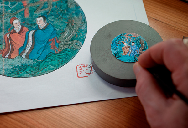 其強烈的浪漫主義色彩,對自由愛情的讚頌與追求,引起了全世界人們深刻的情感共鳴,與西方的《羅密歐與朱麗葉》恰好東西輝映。寶鉑以五只微繪琺瑯手錶,完整講述了梁山伯與祝英台從相識、相戀,到不能廝守,最終化蝶比翼的詩意傳奇。微繪琺瑯表現出雅緻的色彩暈染、細膩的人物勾勒、和諧的場景構圖讓人很難想像,這些在方寸面盤空間上栩栩如生的中國主題琺瑯畫作,其實是出自瑞士的工藝師之手。