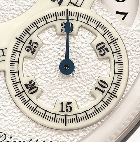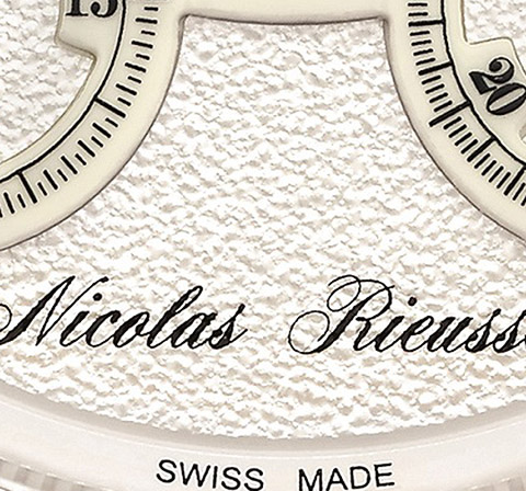 錶款在面盤所呈現的計時測量方式,靈感源自於Nicolas Rieussec發明的首款計時裝置。然而,這位極富想像力的製錶師,為了記錄更為精確的時間而不斷創新,並於1825年研發出計時裝置的改良版。升級後的計時裝置不再使用旋轉白瓷刻度轉盤,取而代之的是一根中央細長秒針(稱為Diablotine或「小惡魔」),指針的尖端注入少量的墨水,讓使用者能在表面的留下微量的墨跡,這與書寫工具的原理相同,這個新裝置的誕生使得Nicolas Rieussec聲名大噪,因為他所發明的裝置能夠記錄極為短暫的時間,除了保證時間測量的準確度與性能,更可以測量至1/5秒的時間,堪稱空前創舉。