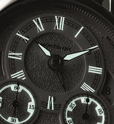 創新設計的面盤,將MB R200自動上鍊自製機芯隱藏其中,完美結合傳統製錶工藝與最新技術;經銑削之導柱輪透過垂直離合裝置,將機芯齒輪系連結至單按把計時機制,垂直離合裝置能夠在不產生磨擦力的情況下運作,並確保計時功能啟用後秒針不會自行跳轉。