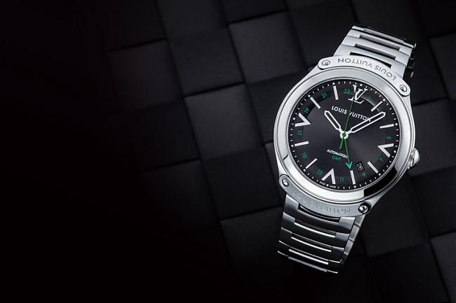 此錶款的秒針與GMT標示為綠色PVD塗層,別具一格的亮色指針為LV Fifty Five系列中三款手錶共同搭載的特色之一,時尚卻不失氣度,徹底展現LOUIS VUITTON百年來的非凡設計本領。