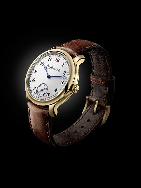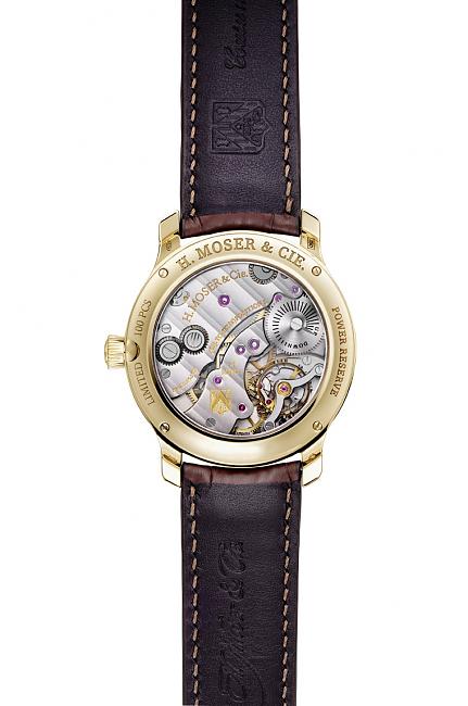 錶款保持著品牌愛簡約的風格,借鑑H. MOSER & CIE的經典作品,揉合了品牌傳統懷錶的特色,採用高貴典雅的18K玫瑰金打造尺寸相對秀氣的38.8mm錶殻,在白色漆面面盤加上霧面處理的效果,又特別把「12」這個數字時標綴上一抹紅色,並配置手工縫製打磨棕色小牛皮革錶帶, 令整只錶散發著復古的魅力。