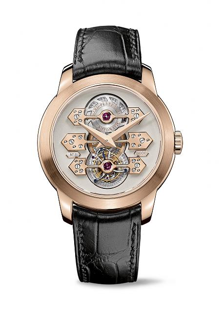 玫瑰金材質/GP 09600-0022自動上鍊機芯/時、分、小秒顯示/陀飛輪裝置/藍寶石水晶鏡面/防水30米/錶徑41mm/參考價:NT$ 6,090,800