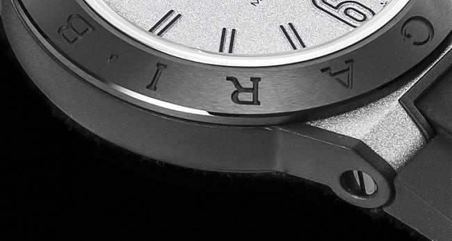 除了不鏽鋼、鎂合金和PEEK之外,錶款的錶圈另外使用了陶瓷材質,而且不鏽鋼的部分也加鍍了黑色PVD,當真是各種素材的大集合。