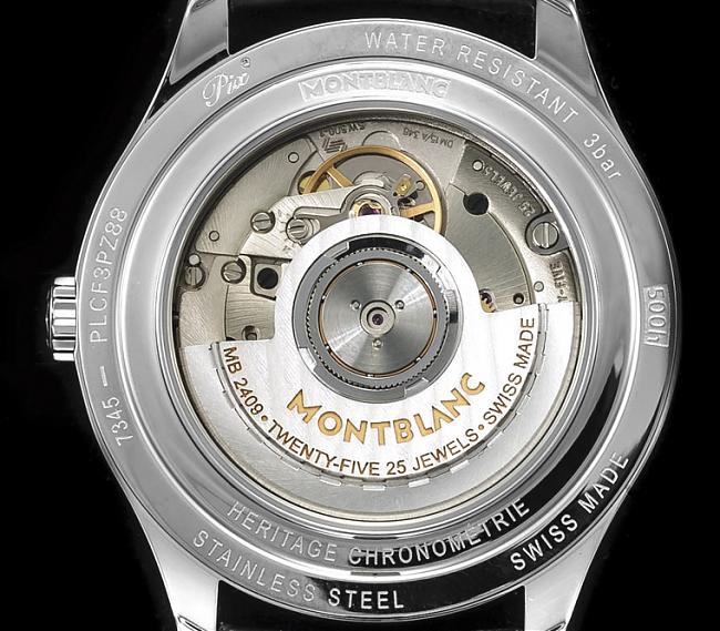 錶款搭載的MB 24.09機芯當是來自ETA 2892,不過石數較標準的稍多;外圈的底蓋做了兩圈的層次,這裡雖然無甚實質意義,不過加上了繁複的刻字後倒是增添了不少精緻感。