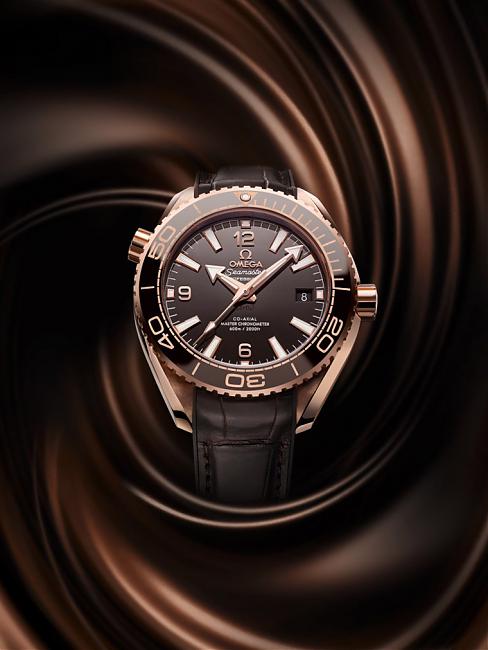 為了與18K Sedna™金柔和的淡紅色調完美匹配,歐米茄推出了巧克力棕色的陶瓷面盤和錶圈。巧克力棕色豐盈迷人,賦予海馬Planet Ocean手錶全新美學境界。歐米茄獨特的Ceragold™革新工序,將金屬數字和潛水刻度完美呈現於錶圈之上。