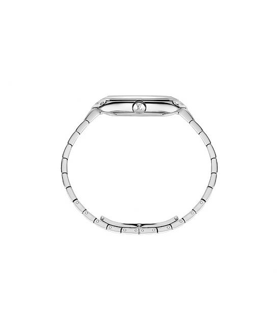 LV Fifty Five系列也可搭配柔軟舒適的全新精鋼錶帶。它採用獨特的網眼設計,向路易威登傳統行李箱的提把曲線致敬。其組裝品質和舒適觸感更確保了錶款的時代感。