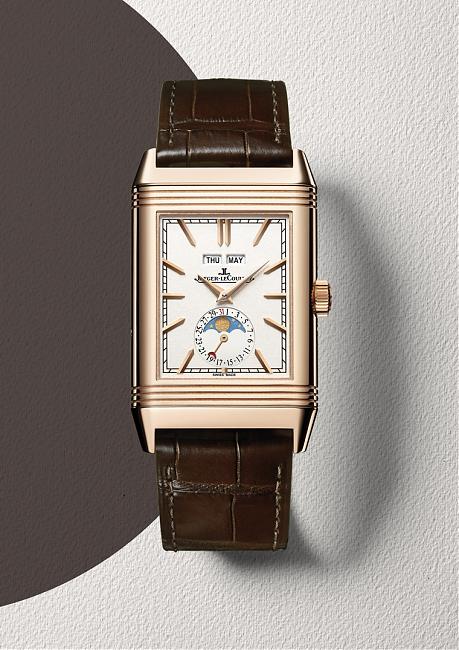 錶款具備兩地時間顯示功能,正面為所在地時間,背面則是第二地時間,透過翻轉面盤能隨時得知兩地時間,透過積家的設計巧思而令佩戴者不易混淆,相當方便。錶款正面更具有全日曆顯示,採用太子妃式指針及手工鑲貼棒狀時標,6點鐘的月相小錶盤除了月相顯示,還具有以指針指示的日期顯示,搭配12點鐘採用視窗顯示的星期與月份,讓佩戴者清晰易讀。