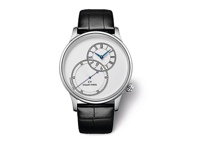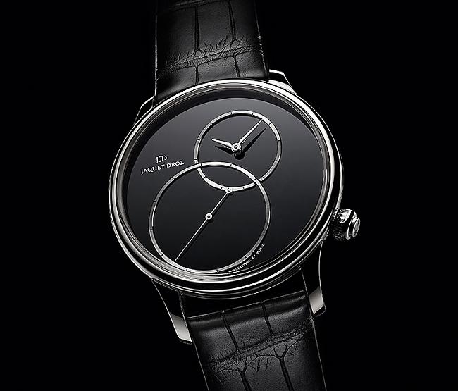 縞瑪瑙偏心大秒針(Grande Seconde Off-centered Onyx)濃縮了雅克德羅深厚的歷史精蘊,其面盤採用深邃迷人的濃黑色調,散發優雅氣度和現代風範。此創意設計的原型是皮埃爾•雅克德羅(PierreJaquet-Droz)在18世紀創制的大秒針(Grande Seconde),此錶款順應啟蒙思潮,突破製錶理念。皮埃爾•雅克德羅設計出兩個上下交疊的錶盤,其中偏心秒針盤設於6點鐘位置,配備極為纖細的指針。