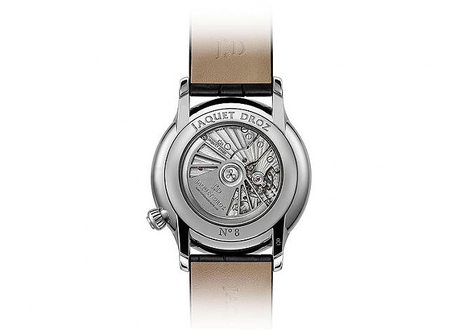 偏心面盤是雅克德羅的招牌設計,這次推出的偏心大秒针款式同樣詮釋了不對稱的優雅美學,而這次推出的兩款新作,藉由不同的配色與細節,簡約風格讓人過目難忘;另外,刻度盤勾勒出的數字8則一直是雅克德羅的幸運數字。