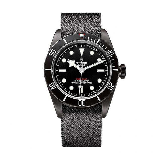 正值60週年的帝舵潛水錶,品牌明顯將所有主力都放在Heritage Black Bay系列,銅材質的Brinze、全黑款的Dark、小尺寸36mm,一般款再分黑圈、紅圈、藍圈,圓拱形錶面與鏡面、雪花指針都是經典設計。而這只全黑版本6點鐘的"200m;660ft"字樣還特別做成紅色,乍看下頗有勞力士單紅字水鬼的樣子,並搭載'15年甫開發出來的自製機芯。