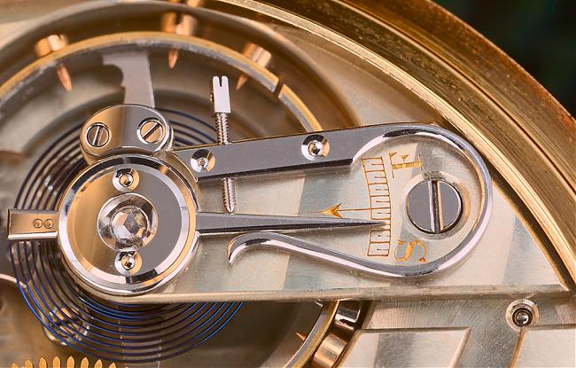 Balance Wheel - 平衡擺輪 如大鐘的鐘擺,由盤狀游絲上來回擺動的輪組成, 利用來回擺動(周率)將時間分割為同等區段的裝置,平衡擺輪、游絲等共同構成了機芯的調速器,提供機芯運轉的穩定度與精確性。