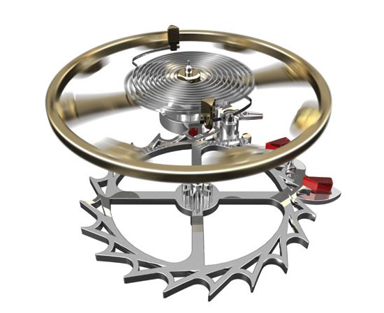 Escapement ﹣擒縱結構 即把發條的能量傳至計時的適當部分的機制。它由幾個部份組成:在傳動部份強力之下的齒輪(擒縱輪)、倚著擒縱輪有規則擺動的叉式槓桿(俗稱馬仔),後者令輪上的齒進退運轉以保證輪的穩定運行。擒縱輪以脈動方式傳輸它的部份動力以維持控制擺輪規律的擺動。