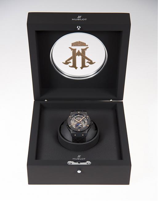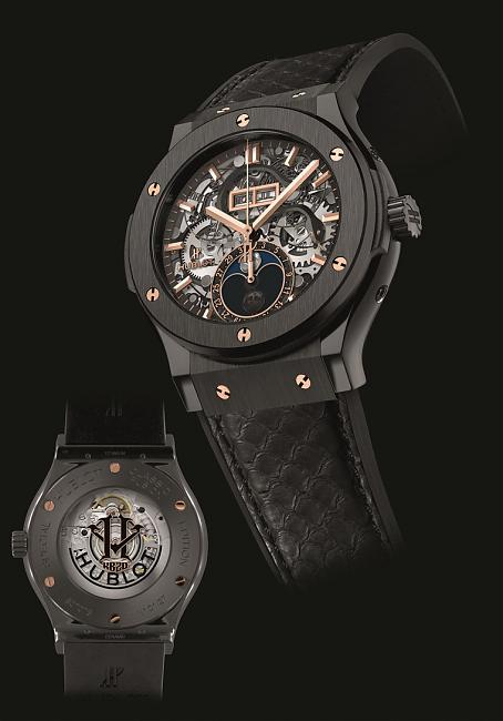 陶瓷材質/HUB 1131自動上鍊機芯/時、分、秒、日期、星期、月份顯示/月相顯示/藍寶石水晶鏡面、透明底蓋/防水50米/錶徑45mm/限量24只